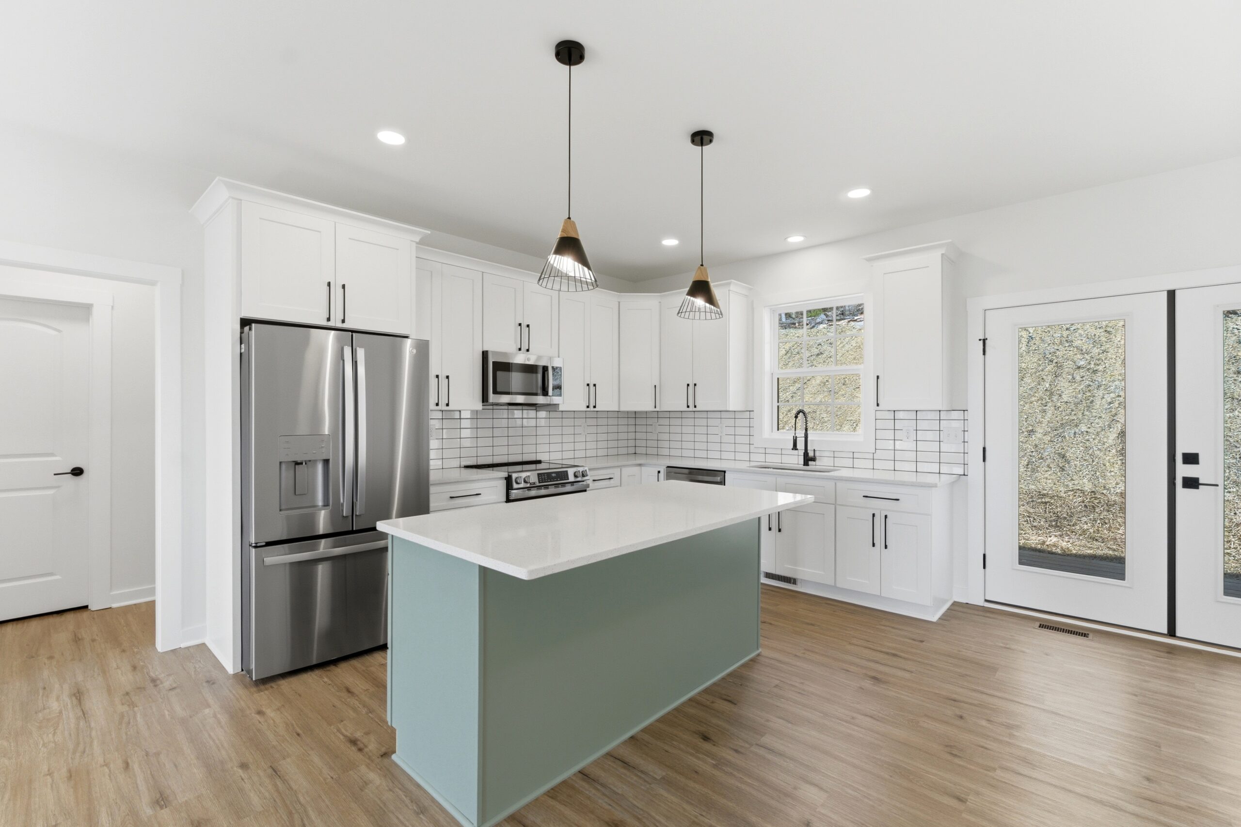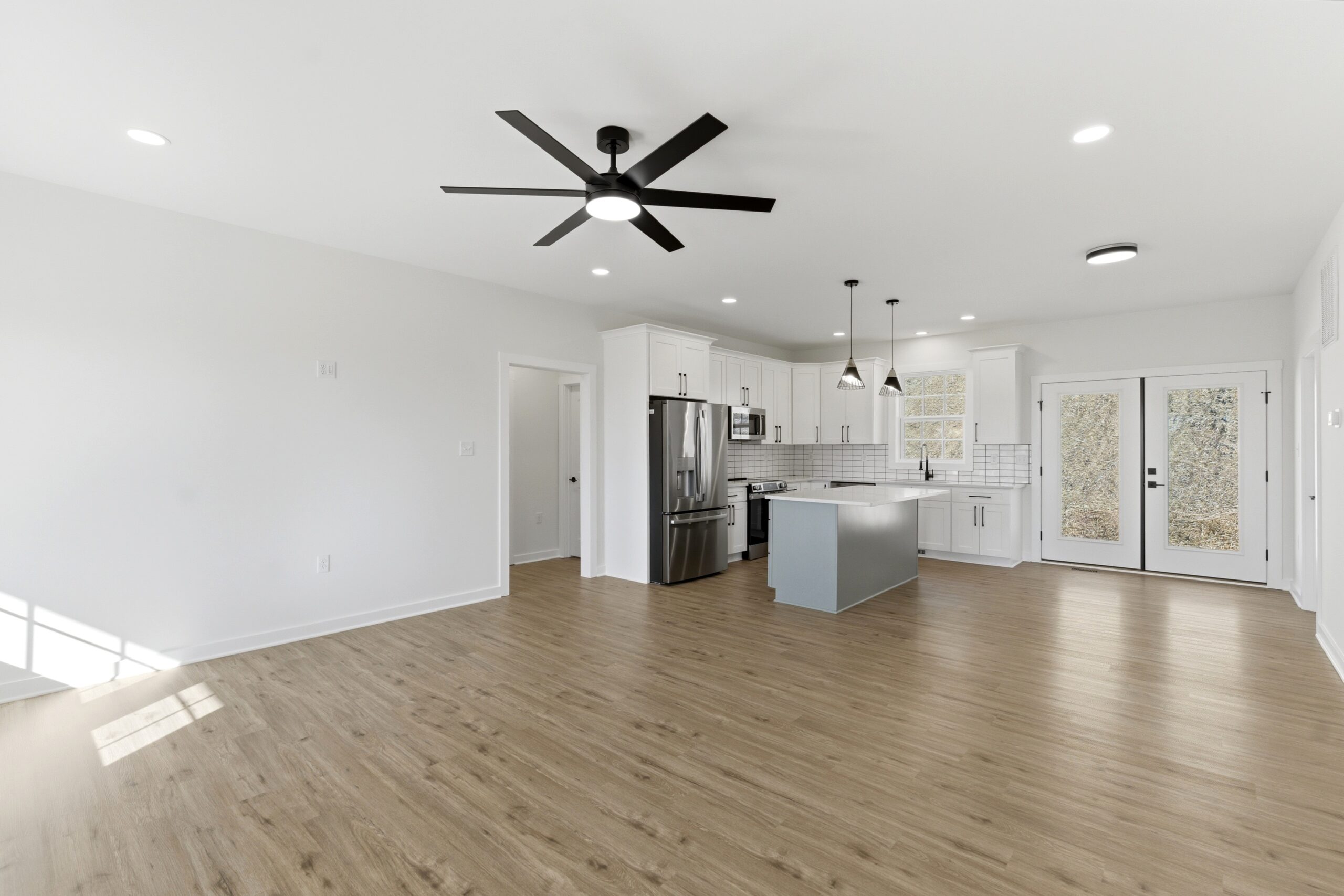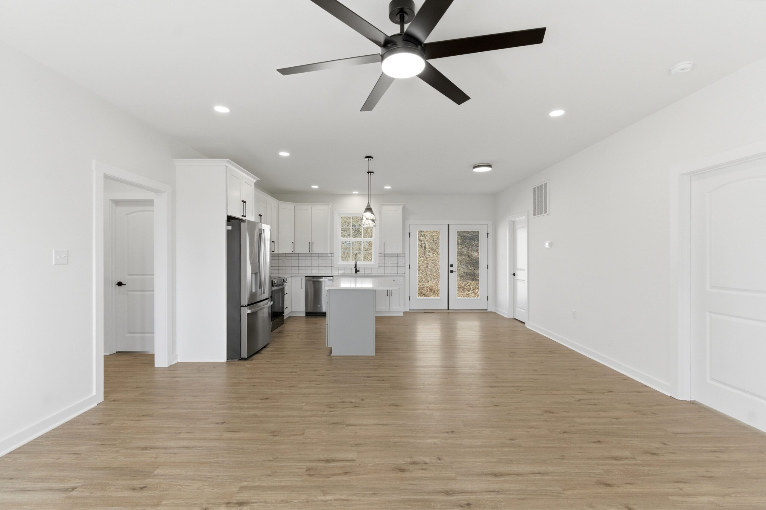 This 3-bedroom, 2-bath country-style home offers 1,334 square feet of well-designed living space, featuring an open-concept layout that seamlessly connects the great room, kitchen, and dining area. The kitchen is equipped with a large island, additional sink, microwave drawer, and ample cabinetry for storage, while an 8-foot-deep deck extends the living space outdoors. A spacious laundry room with built-in cabinets and a nearby exterior door adds convenience, and the split-bedroom design provides privacy, with a comfortable master suite that includes a walk-in closet, double vanities, linen storage, and an oversized shower.