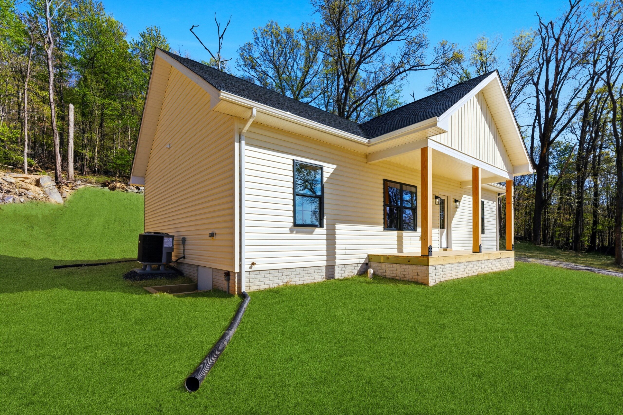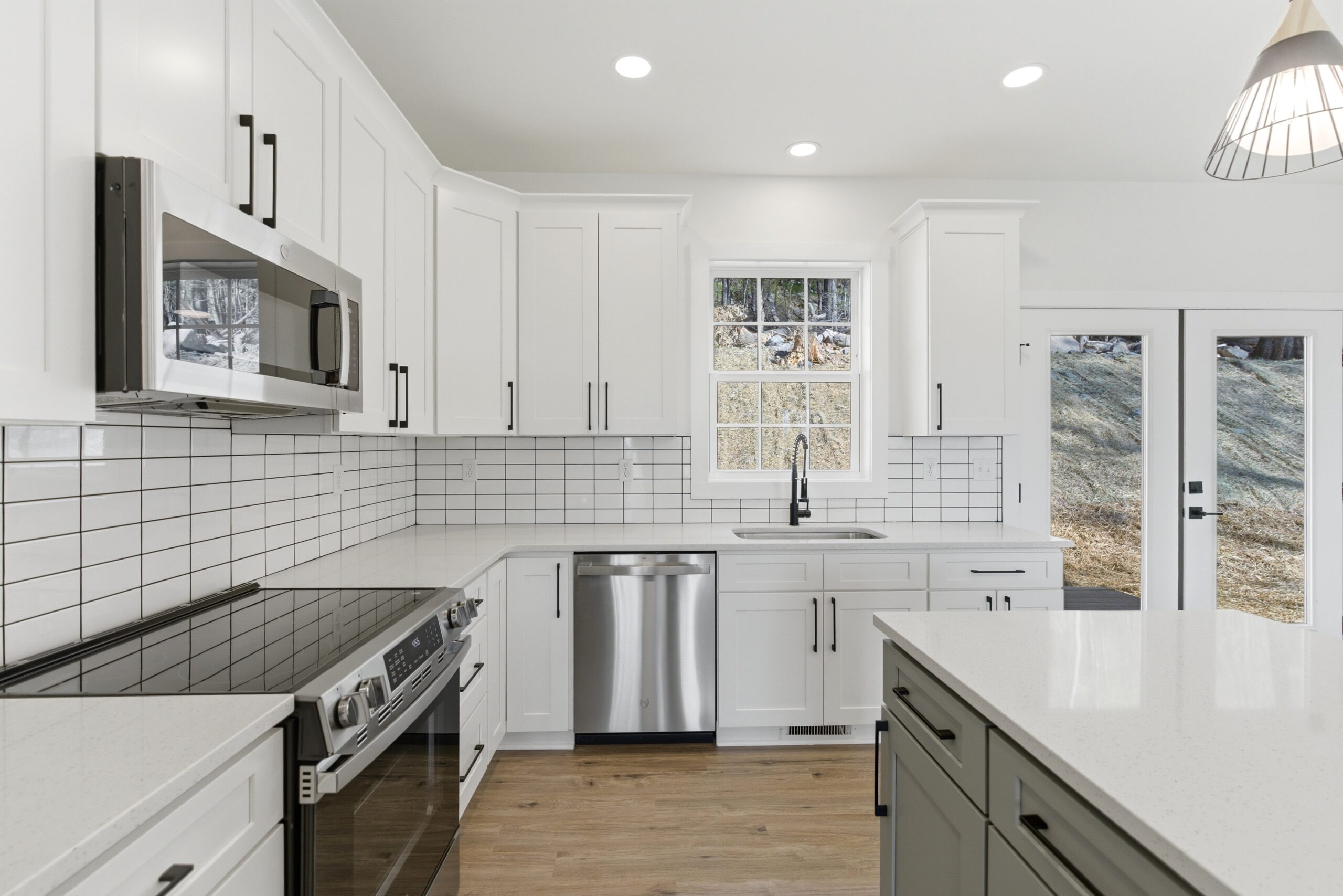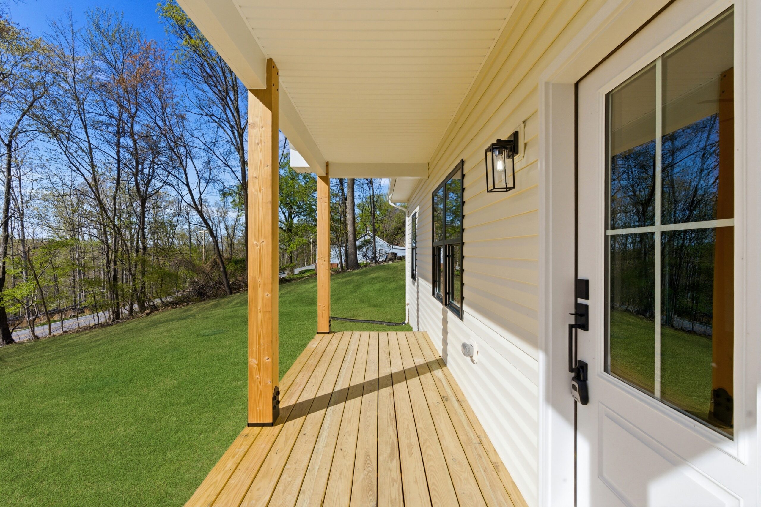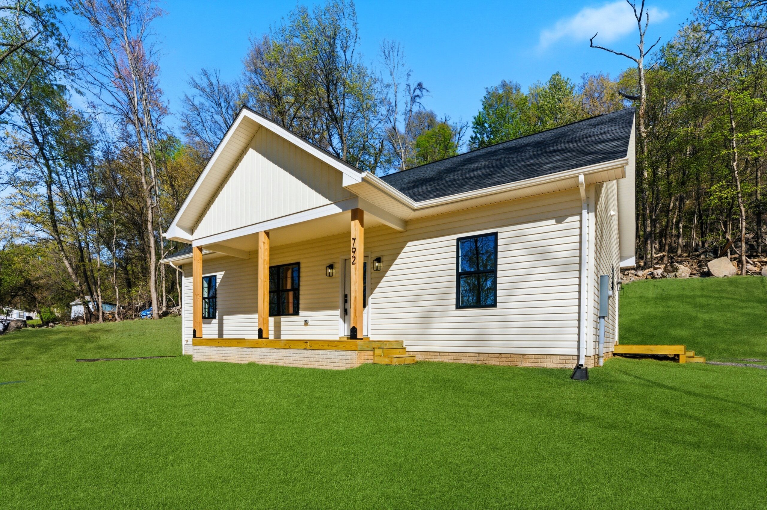 This 3-bedroom, 2-bath country-style home offers 1,334 square feet of well-designed living space, featuring an open-concept layout that seamlessly connects the great room, kitchen, and dining area. The kitchen is equipped with a large island, additional sink, microwave drawer, and ample cabinetry for storage, while an 8-foot-deep deck extends the living space outdoors. A spacious laundry room with built-in cabinets and a nearby exterior door adds convenience, and the split-bedroom design provides privacy, with a comfortable master suite that includes a walk-in closet, double vanities, linen storage, and an oversized shower.